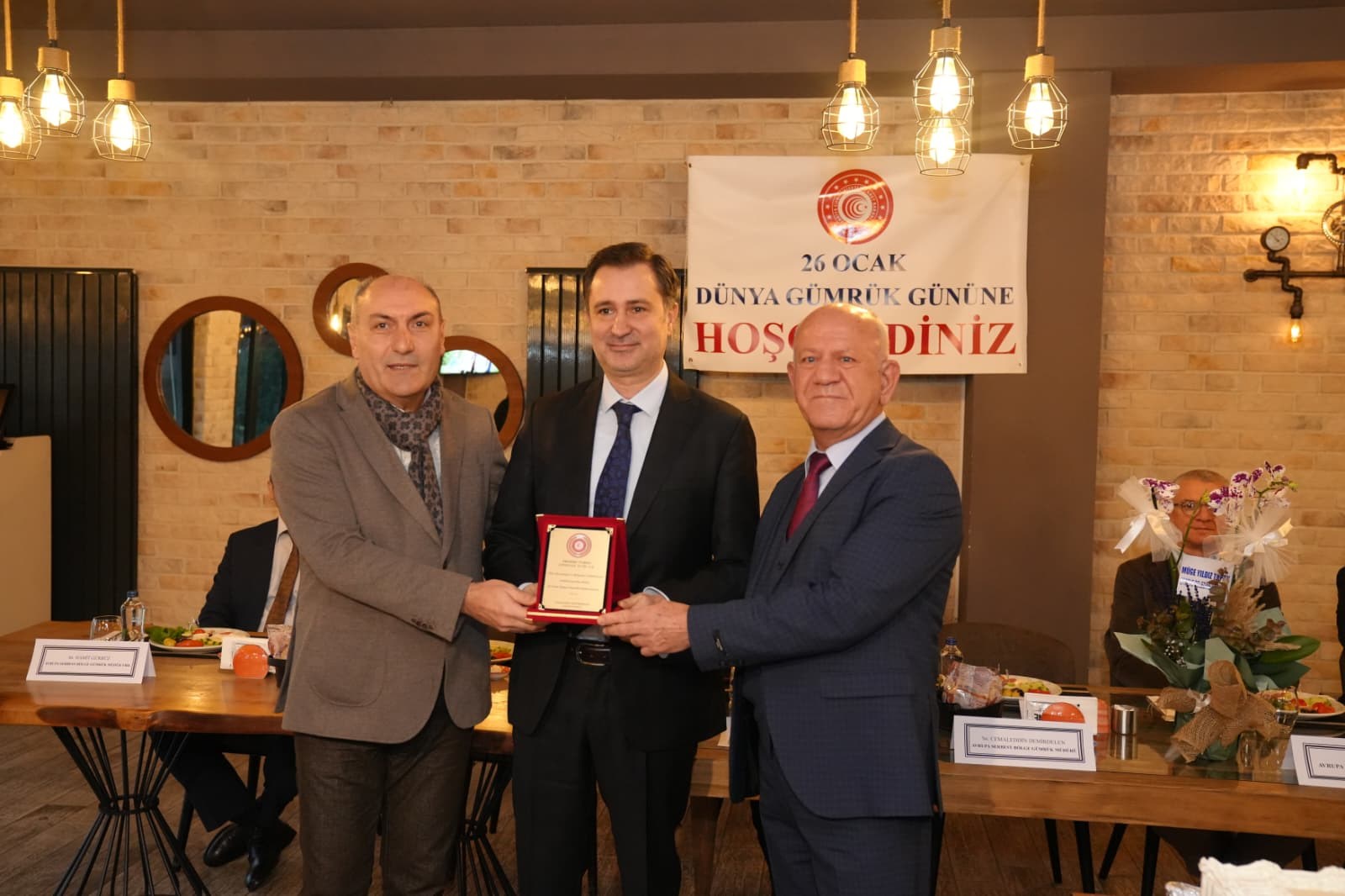 Programın sonunda, uzun yıllar boyunca gümrük teşkilatına hizmet veren ve emekliliğe ayrılacak olan Bölge Müdür Yardımcıları Mete Ağzıbüyük ve Osman Taşdemir’e, meslek hayatları süresince gösterdikleri özverili çalışmalar ve kuruma sundukları katkılardan dolayı plaket takdim edildi. Etkinlikler, günün anısına çekilen hatıra fotoğrafı ile sona erdi.