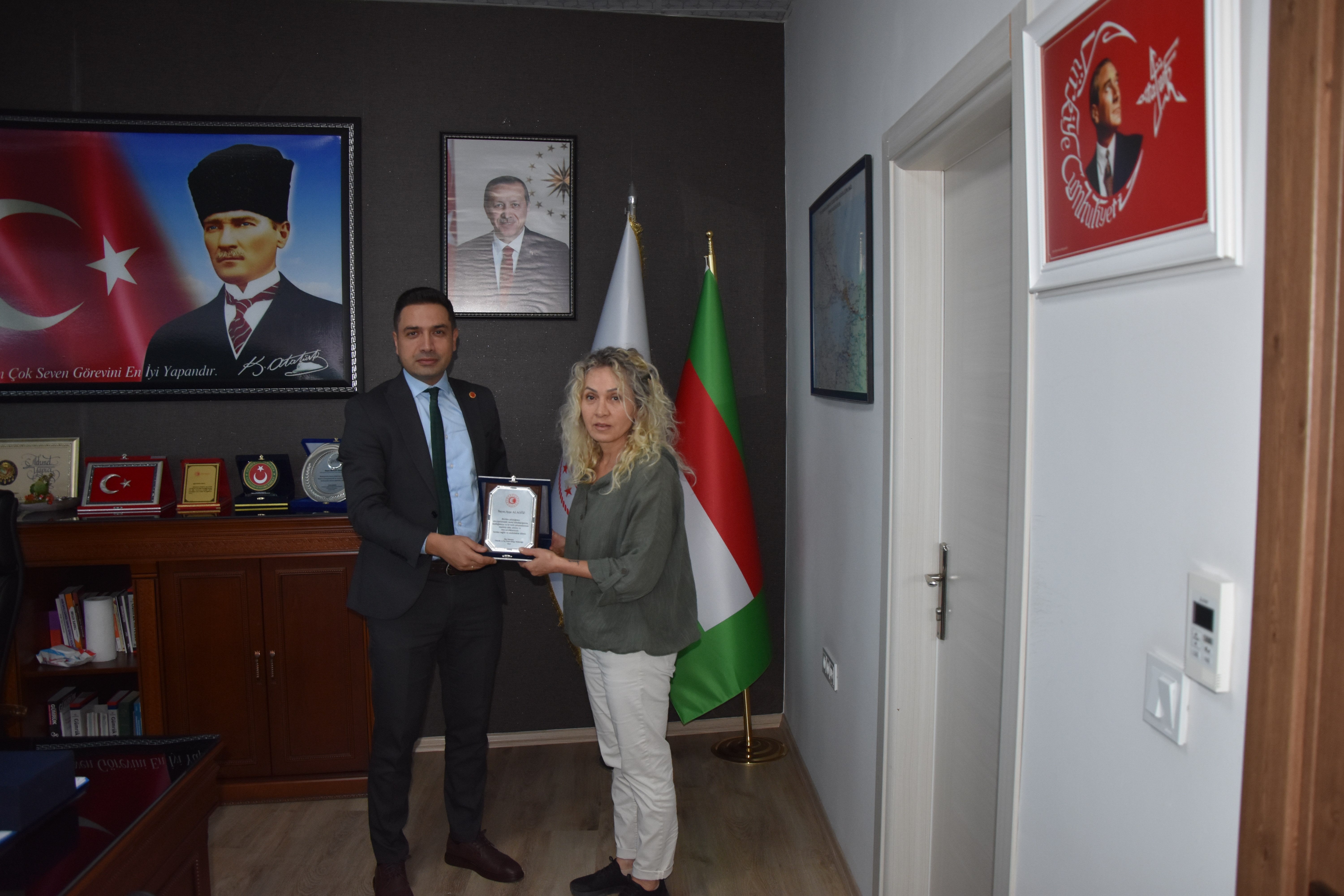 Bölge Müdürümüz Sn.Mehmet YAPICI Bölge Müdürlüğümüzden tayin olarak ayrılan Bölge Müdür Yardımcımız Ayşe ALAGÖZ'e verdiği emek ve katkılarından ötürü teşekkür ederek plaket takdim ettiler.