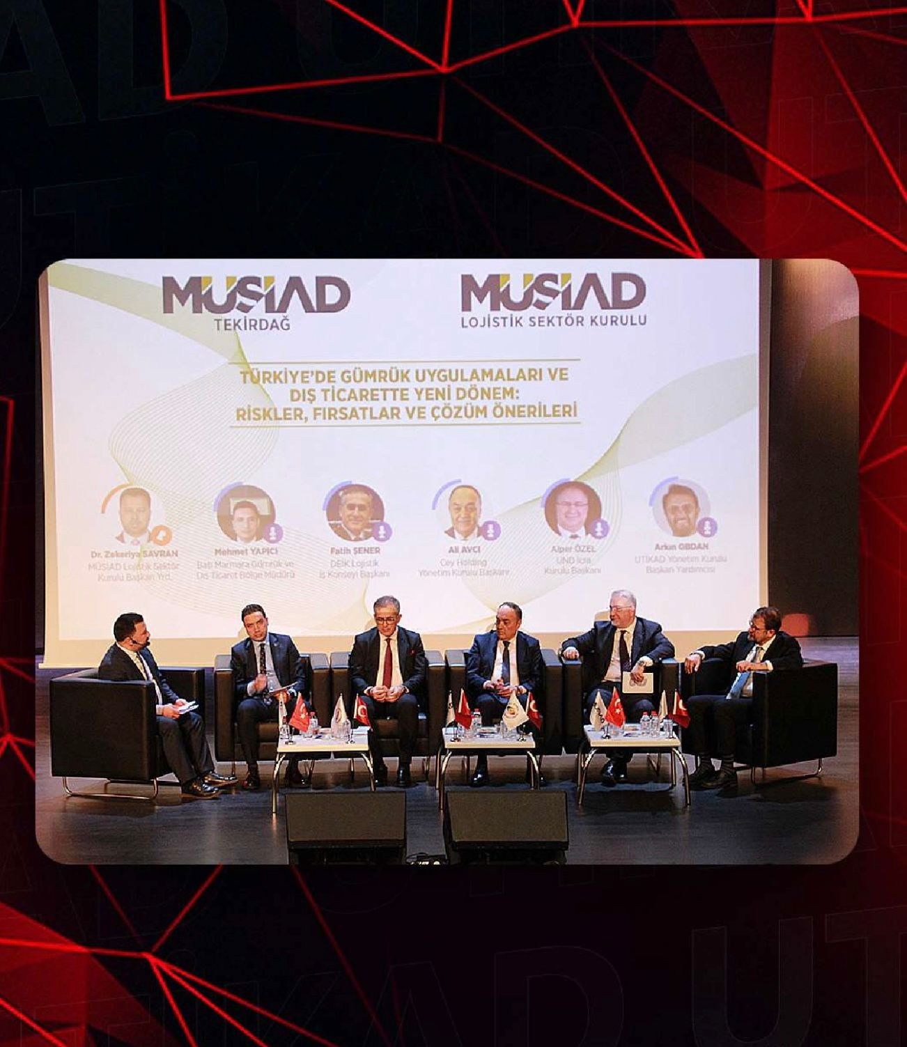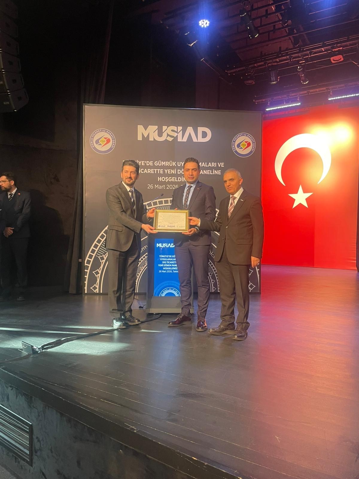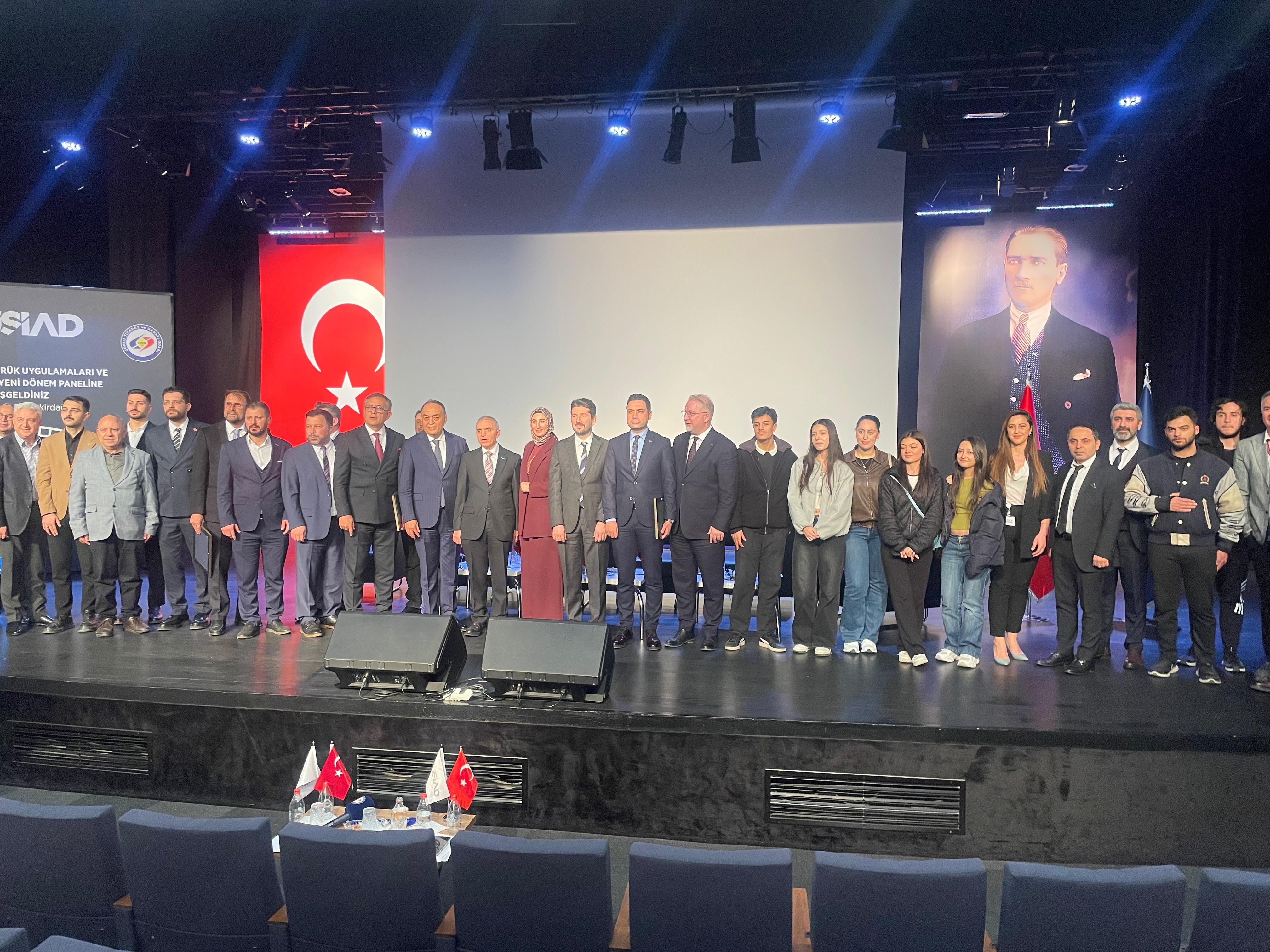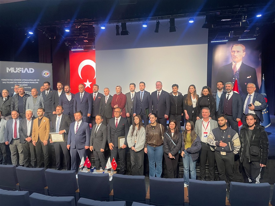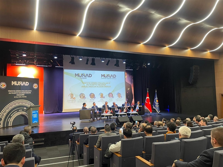 30 Mart 2026Bölge Müdürümüz Mehmet YAPICI’nın panelist olduğu ve Müsiad Lojistik Sektör Kurulu tarafından düzenlenen Türkiye’de Gümrük Uygulamaları ve Dış Ticarette Yeni Dönem: Riskler, Fırsatlar ve Çözüm Önerileri konulu panele; Bölge Müdürümüz Mehmet YAPICI, Bölge Müdür Yardımcımız Güven DEMİR, Tekirdağ Gümrük Müdürümüz Cüneyt ÇAKALOĞLU, Marmaraereğlisi Gümrük Müdürümüz Kemal KÜÇÜKAYDIN ve Çerkezköy Gümrük Müdür Yardımcımız Mehmet ÖZTÜRK katılım sağladı.