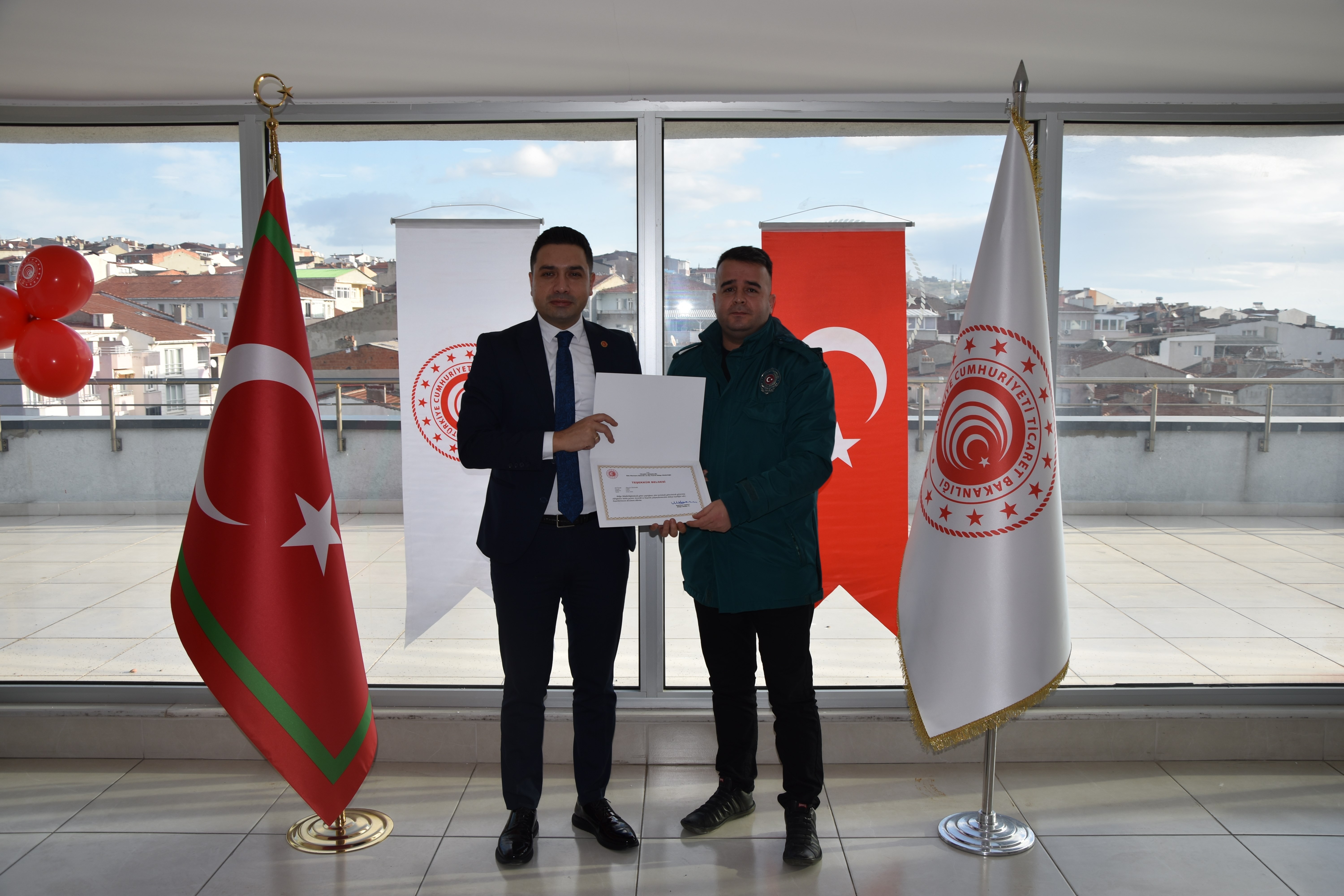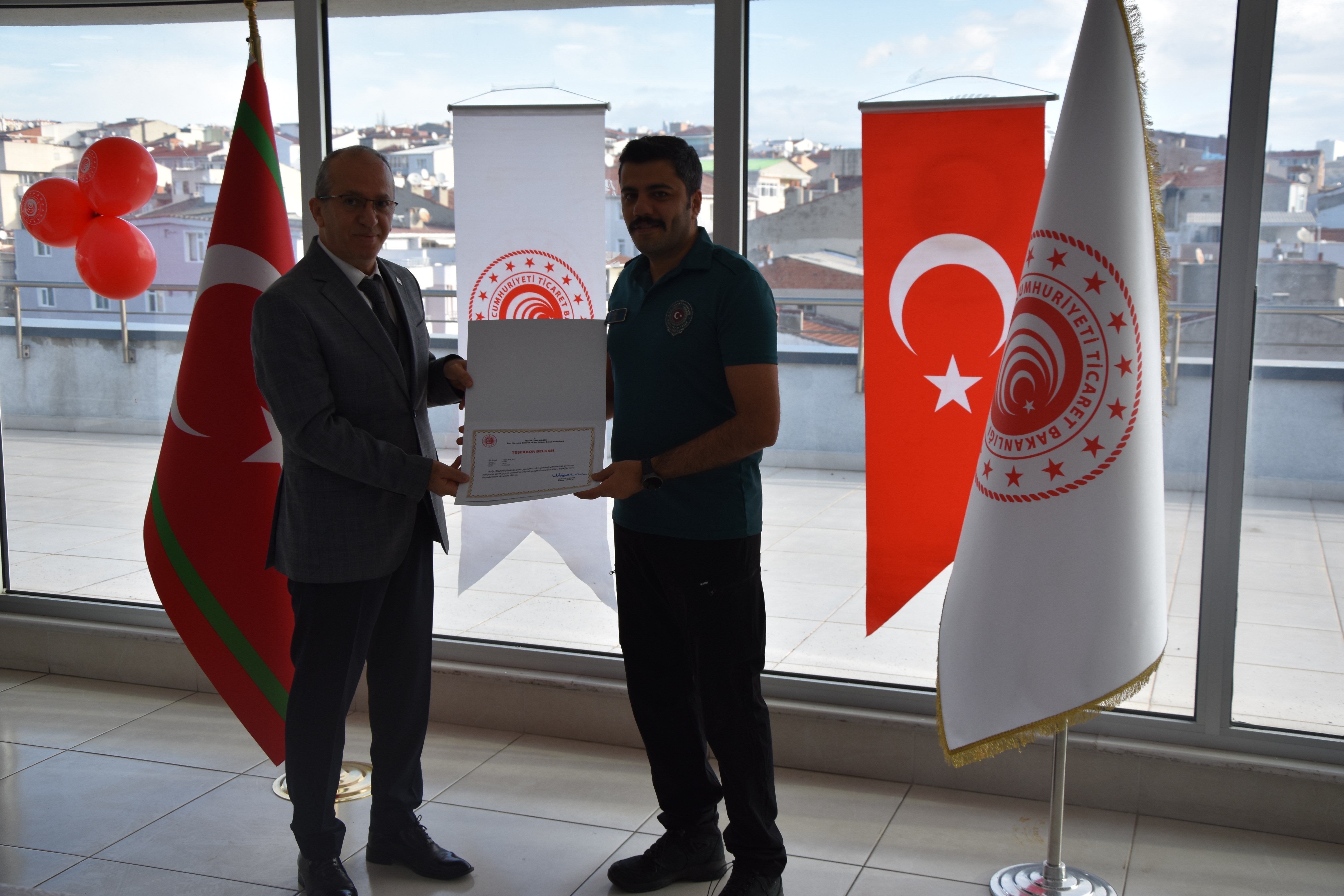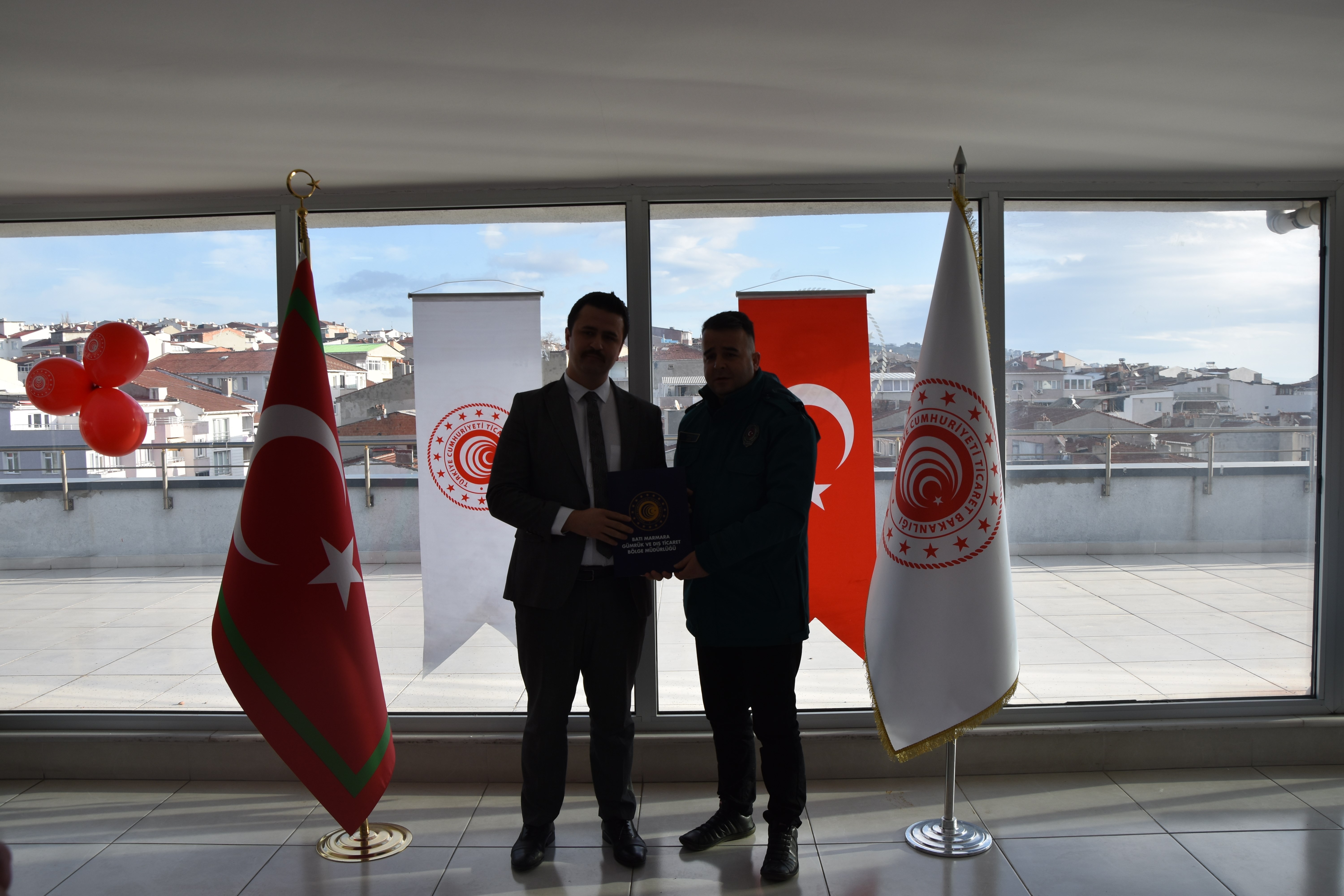 29 Ocak 2026Batı Marmara Gümrük ve Dış Ticaret Bölge Müdürü Mehmet Yapıcı ve Kaymakam Adayı Fahrettin ÇIRAK İle birlikte Bölge müdür yardımcıları Şenol SOYLU, Güven DEMİR, Mete AĞZIBÜYÜK ve Osman TAŞDEMİR başta olmak üzere; Tekirdağ Gümrük Müdürü Cüneyt ÇAKALOĞLU, Hukuk Şube Müdürü Barış AYTAR,Şube Müdürlerimiz Mehmet AKİPEK ve Yunus ÇELİK , Bölge Amirimiz Serdal KILIÇ katılımıyla, başarılı çalışmalarıyla öne çıkan gümrük personelleri için başarı belgesi takdim töreni düzenlendi.