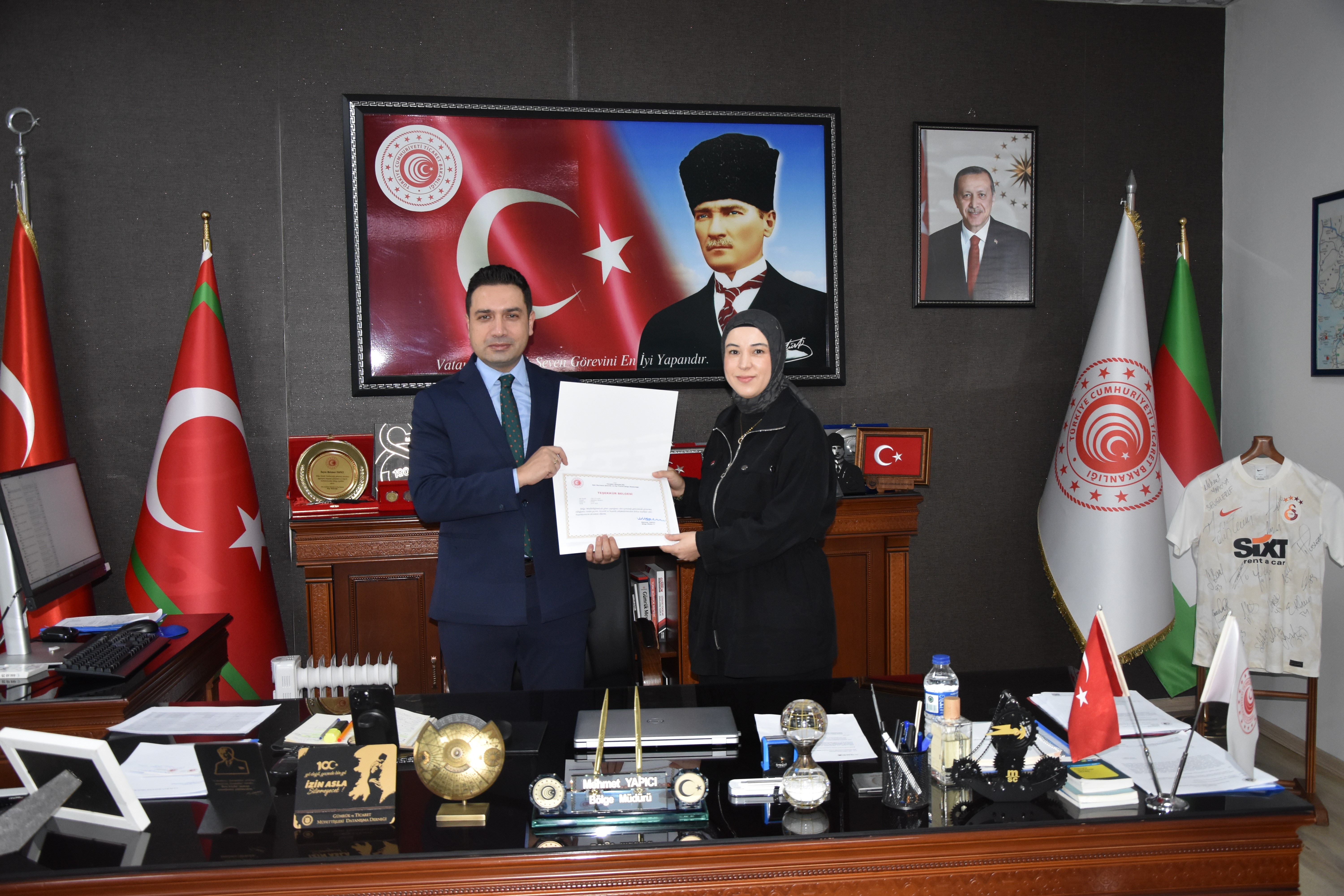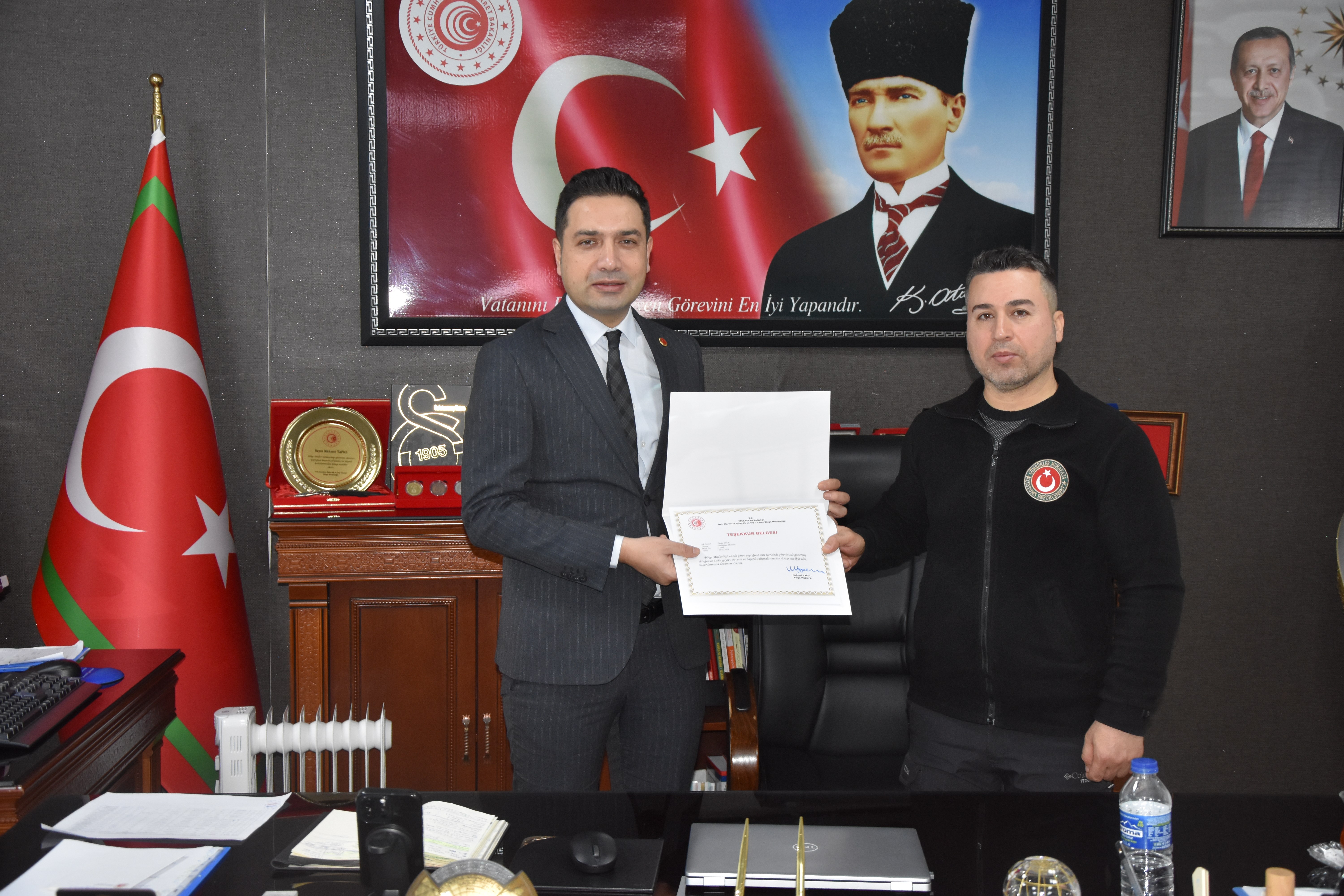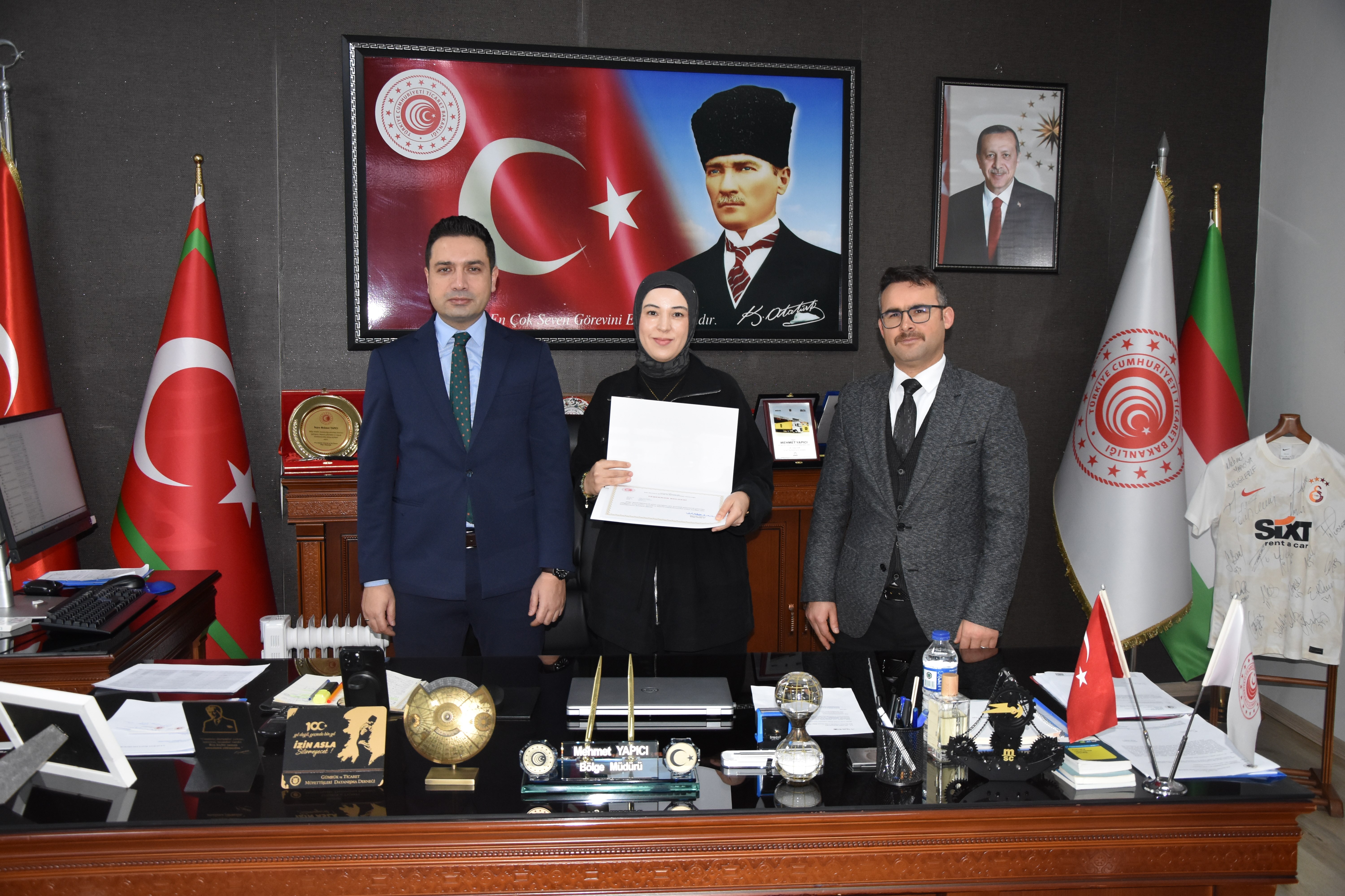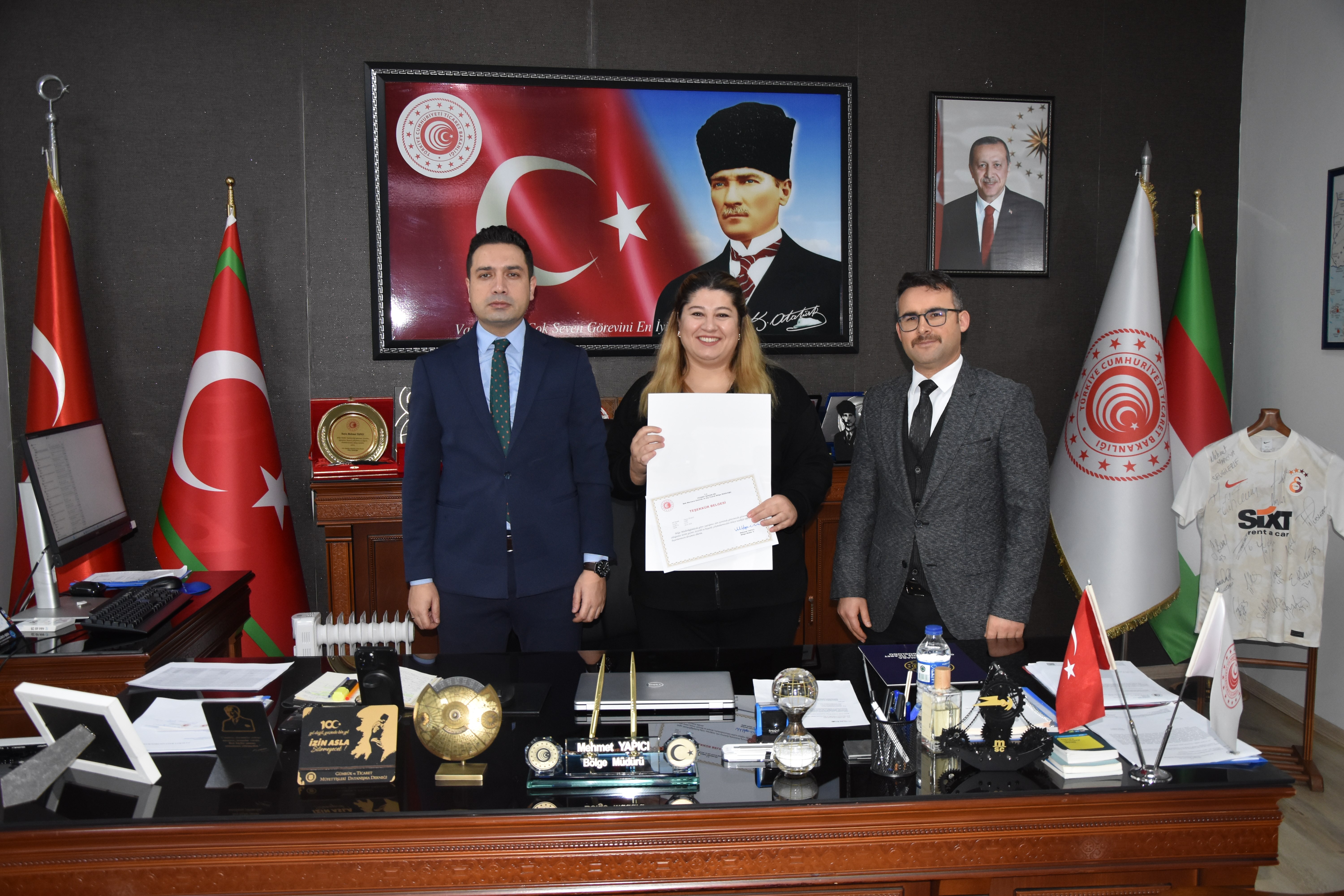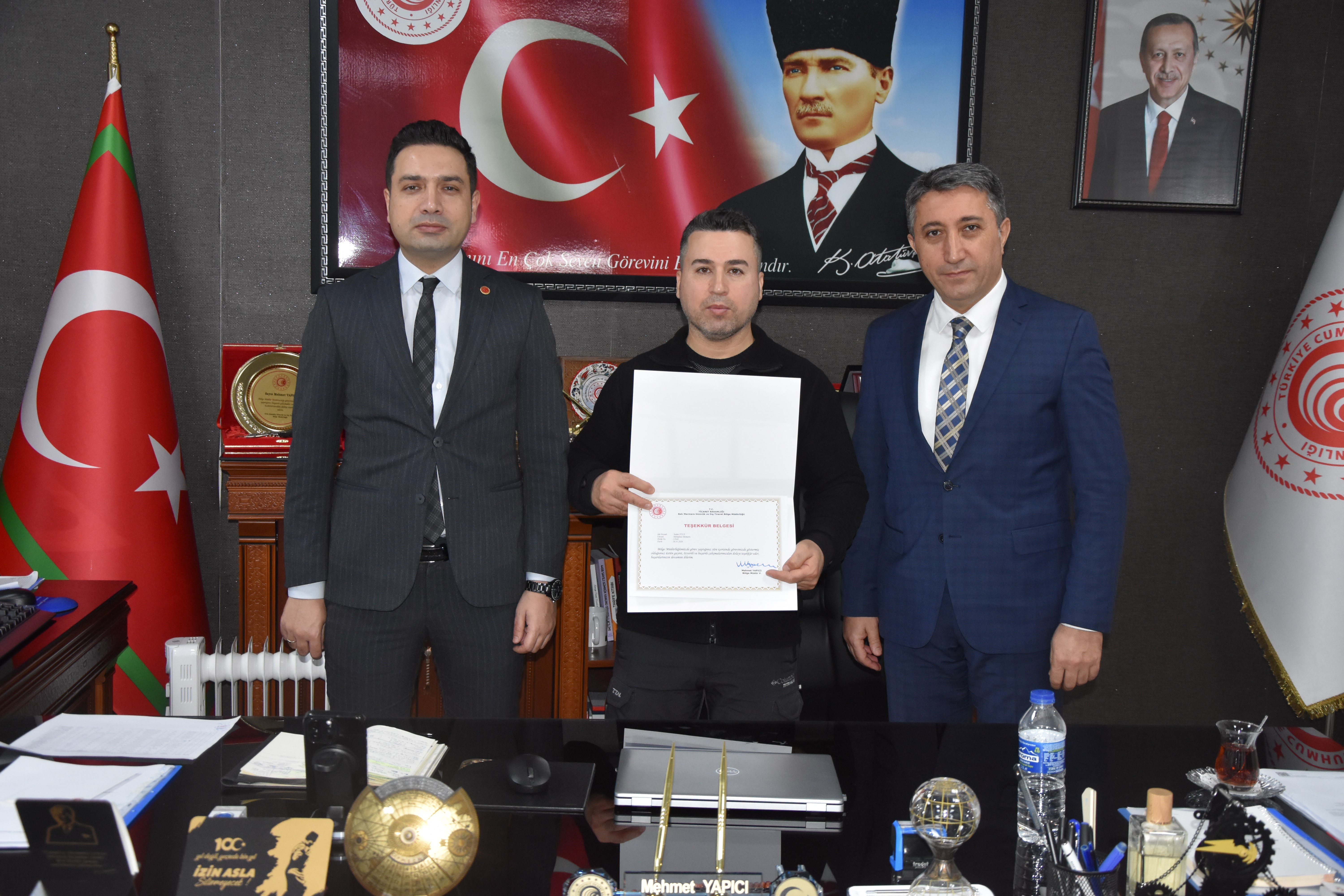 04 Şubat 2026Batı Marmara Gümrük ve Dış Ticaret Bölge Müdürü Mehmet Yapıcı ve Kaymakam Adayı Fahrettin ÇIRAK İle birlikte Bölge müdür yardımcıları Şenol SOYLU, Güven DEMİR, Mete AĞZIBÜYÜK ve Osman TAŞDEMİR başta olmak üzere; Tekirdağ Gümrük Müdürü Cüneyt ÇAKALOĞLU, Hukuk Şube Müdürü Barış AYTAR,Şube Müdürlerimiz Mehmet AKİPEK ve Yunus ÇELİK , Bölge Amirimiz Serdal KILIÇ katılımıyla, başarılı çalışmalarıyla öne çıkan gümrük personelleri için başarı belgesi takdim töreni düzenlendi.